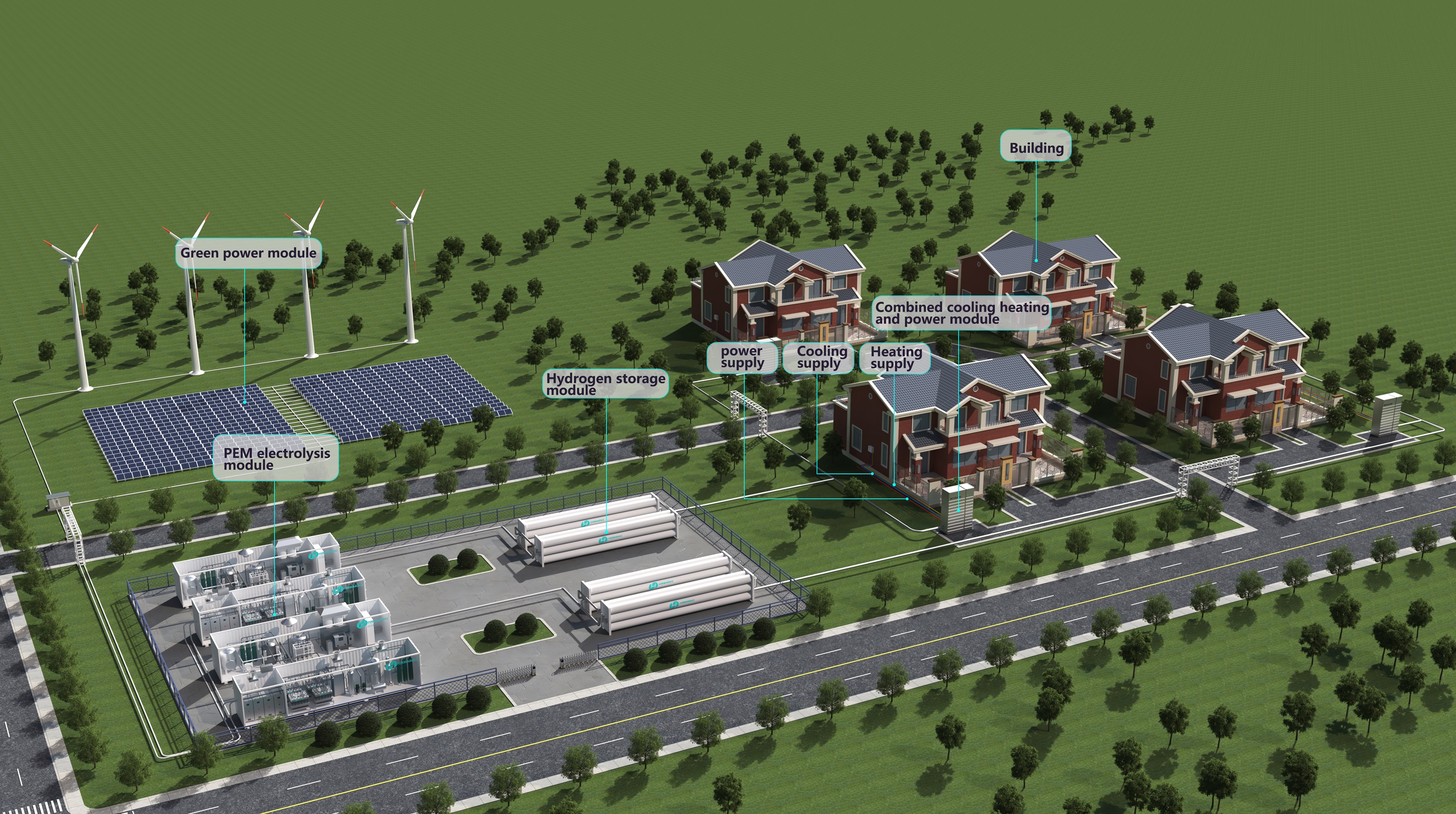 The company provides hydrogen-based zero-carbon community solutions for the construction industry, featuring an in-house designed and developed tri-generation system that supplies cooling, heating, and electricity. This solution supports the construction sector in achieving net-zero carbon emissions